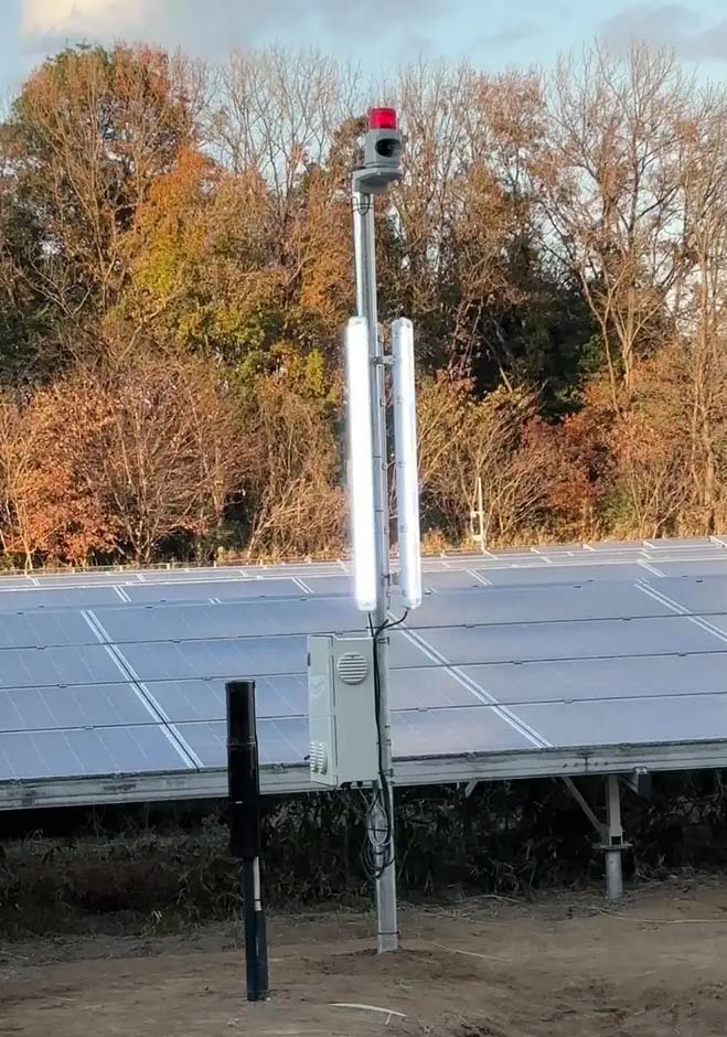 既存警備システムと連動するカスタム仕様で、太陽光発電所の盗難抑止を強化