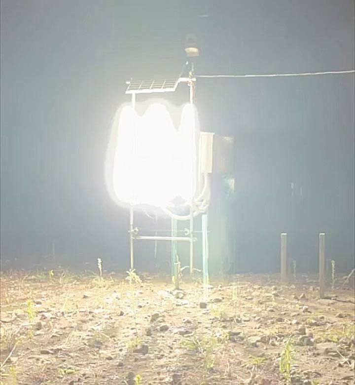 犯行現場での犯行時間を阻止(犯行時間を遅らせる)するために、超高輝度の投光器(10,000ルーメン×3基)によるまぶしい光で不審者を威嚇。また、最大105dB(救急車のサイレンが約80dB相当)のサイレン音で不審者を威嚇。安易に犯行をさせないように、投光器の光とサイレン音が共に連動し盗難意欲を衰退させる。なお光量、音量はプログラム設定により出力強弱の変更が可能です。
